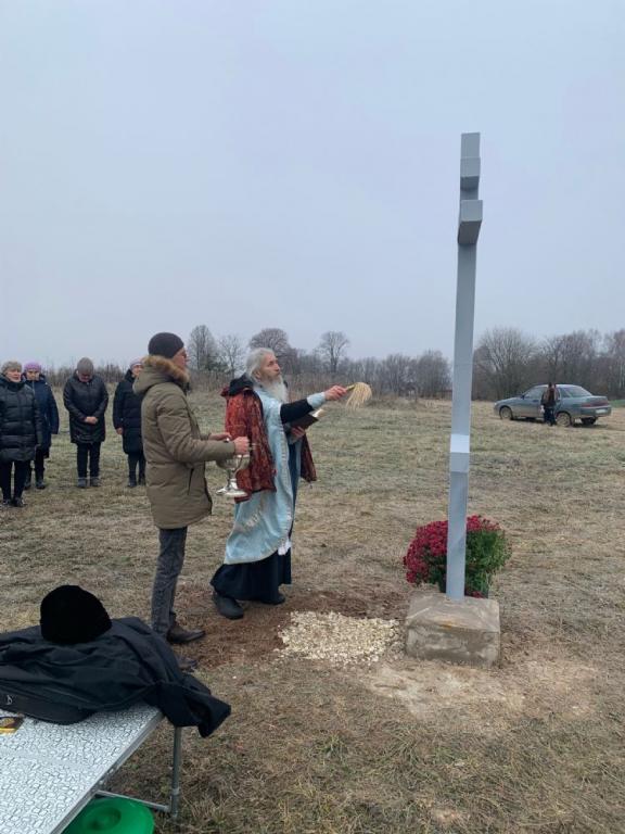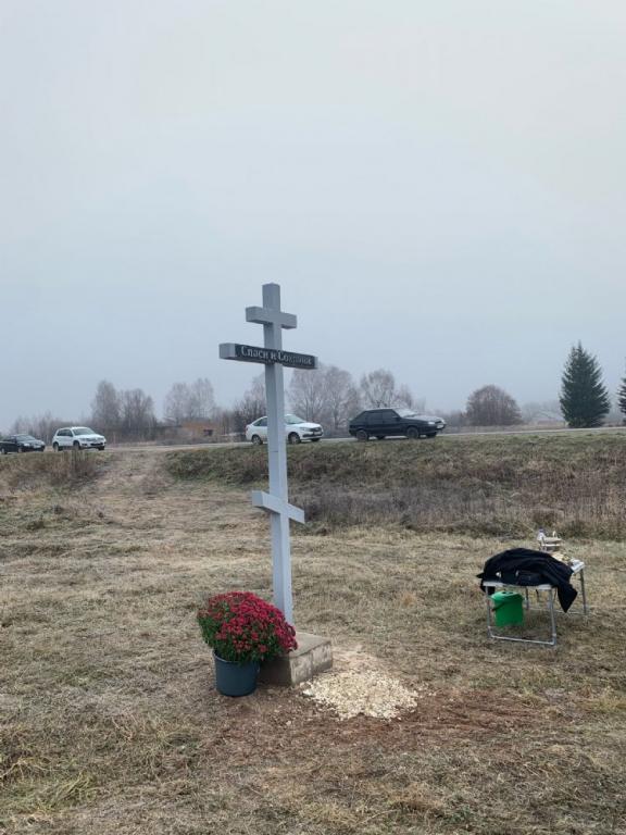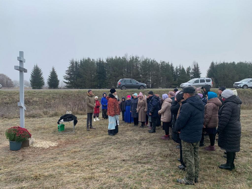 Чин освящения совершил настоятель храма Рождества Христова села Арино протоиерей Николай Чузаев. Он отслужил водосвятный молебен и окропил святой водой крест и всех собравшихся.