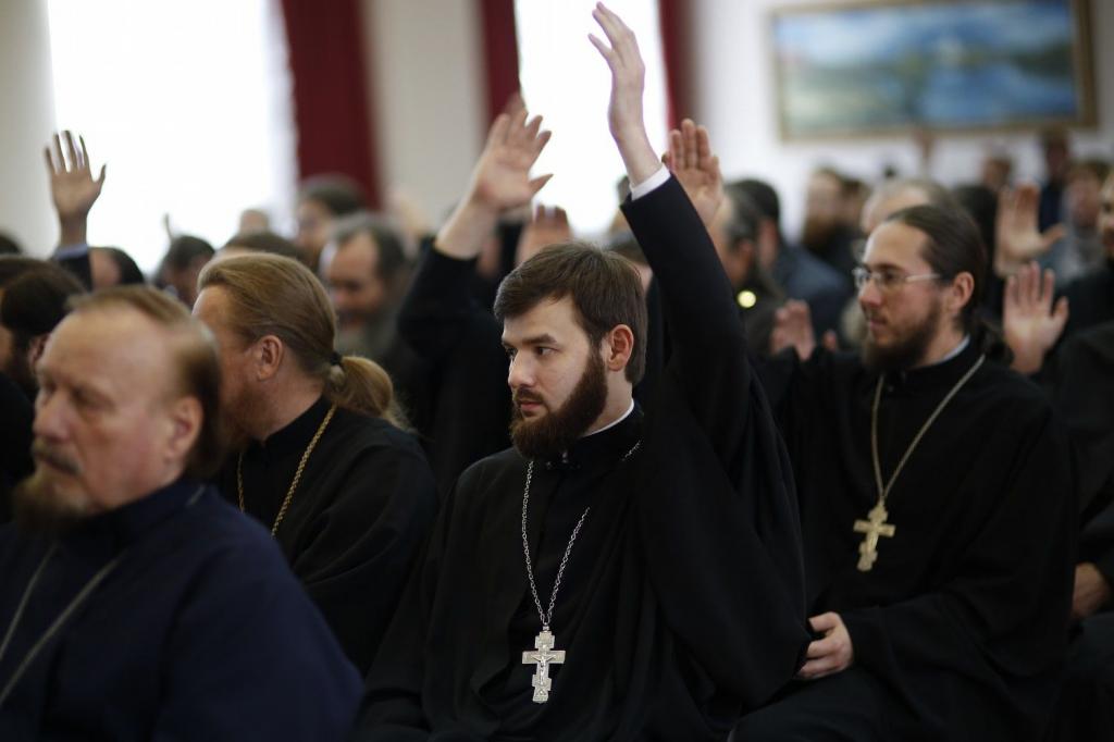 Сегодня в столице прошло ежегодное Епархиальное собрание, на которое съехалось приходское духовенство, сотрудники епархиальных отделов, представители приходов.