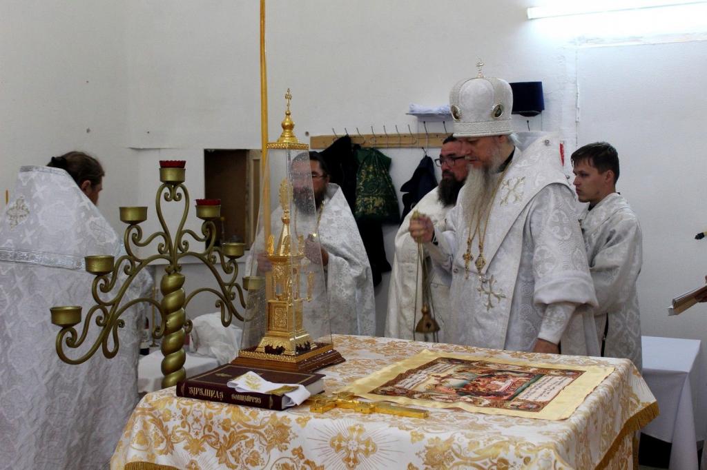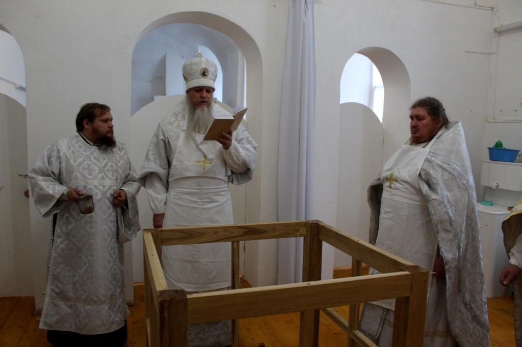 Епископ Волжский и Сернурский Феофан совершил чин великого освящения престола в приделе в честь святого великомученика Георгия Победоносца, а затем возглавил Божественную литургию.