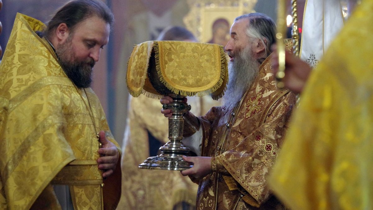 По окончании богослужения настоятельница Дивеевской обители выразила благодарность архипастырям и пастырям за совершенное богослужение и преподнесла митрополиту Георгию заздравную просфору.
