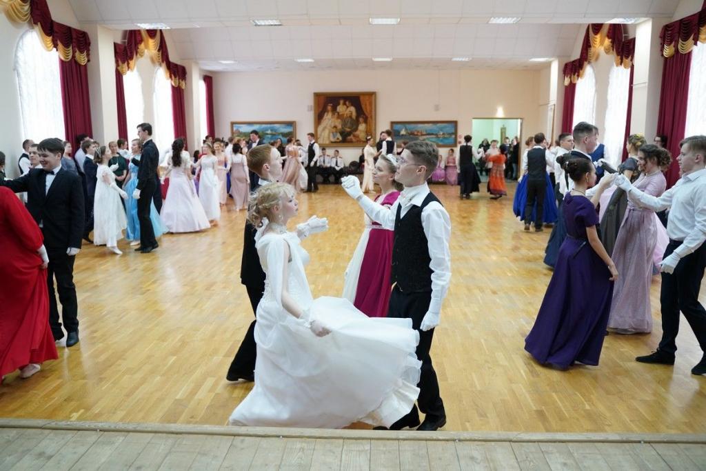 Начало балу положил бальный танец «падеграс», 50 пар закружились по залу. Напомним, в течение нескольких месяцев будущие участники бала разучивали танцы под руководством профессиональных хореографов Людмилы Овчинниковой и Екатерины Ивановой.