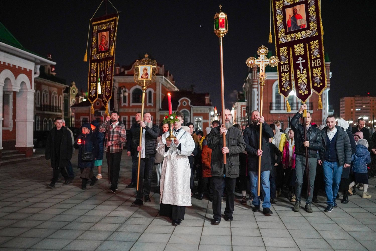 В ночь с 11 на 12 апреля митрополит Йошкар-Олинский и Марийский Иоанн совершил в Благовещенском кафедральном соборе пасхальные богослужения — полунощницу, крестный ход, Пасхальную заутреню и божественную литургию святителя Иоанна Златоуста.
