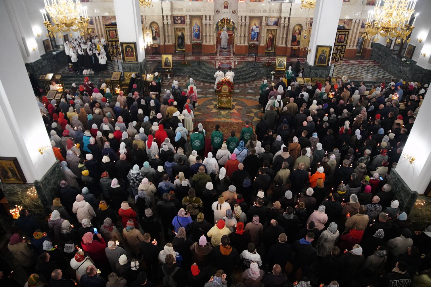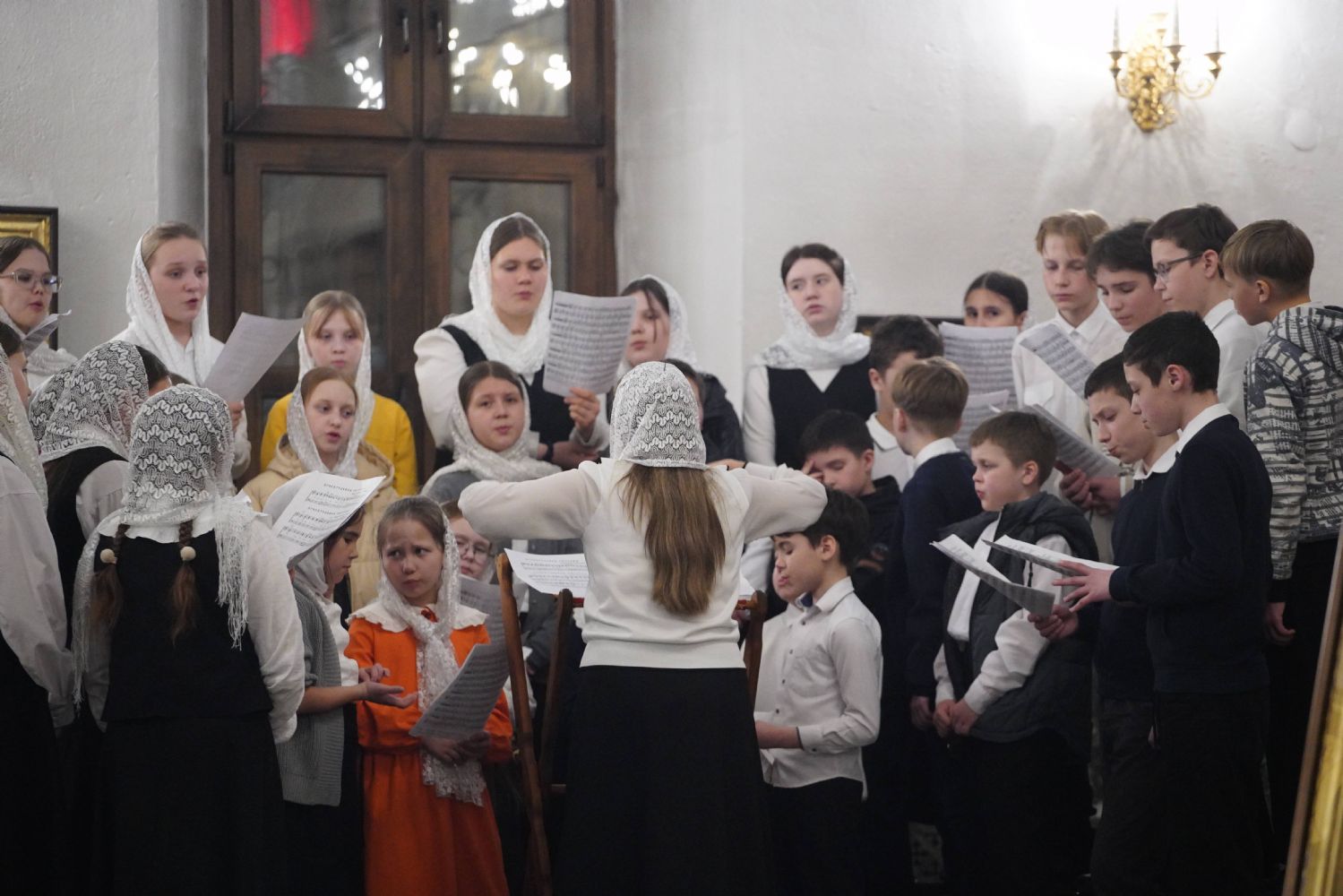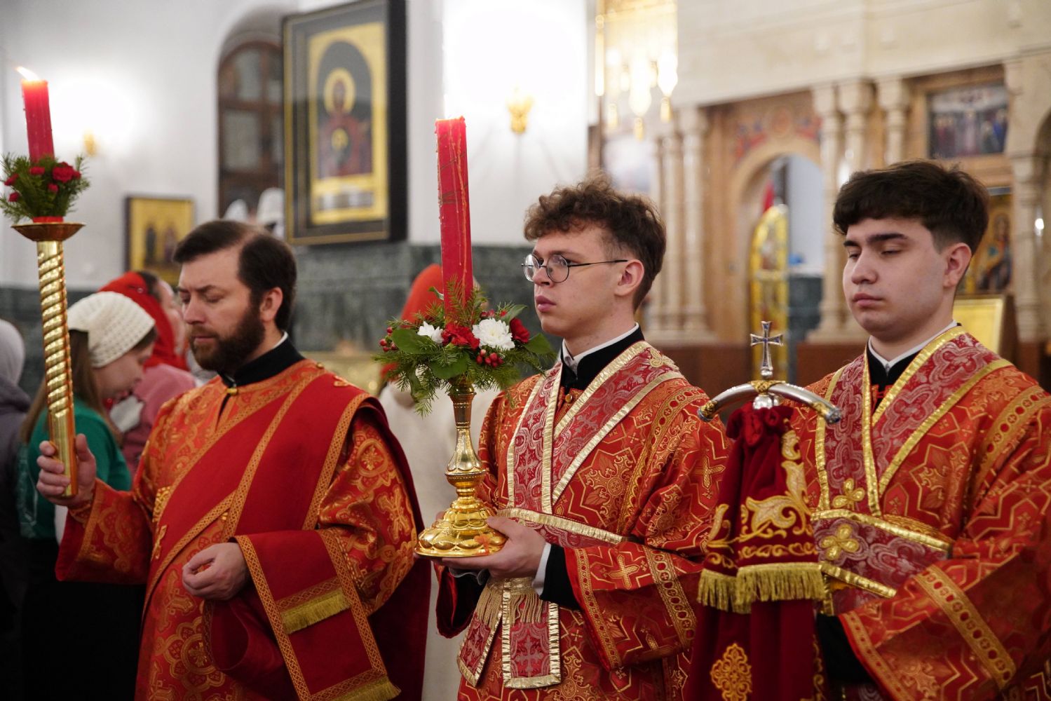 Владыке сослужили ключарь собора протоиерей Сергий Поглазов, клирики собора и протодиакон Михаил Козловский. Богослужебные песнопения исполняли старший и младший составы детско-юношеского хора «Благовест» под руководством регентов Татьяны Черновой и Надежды Поздеевой.