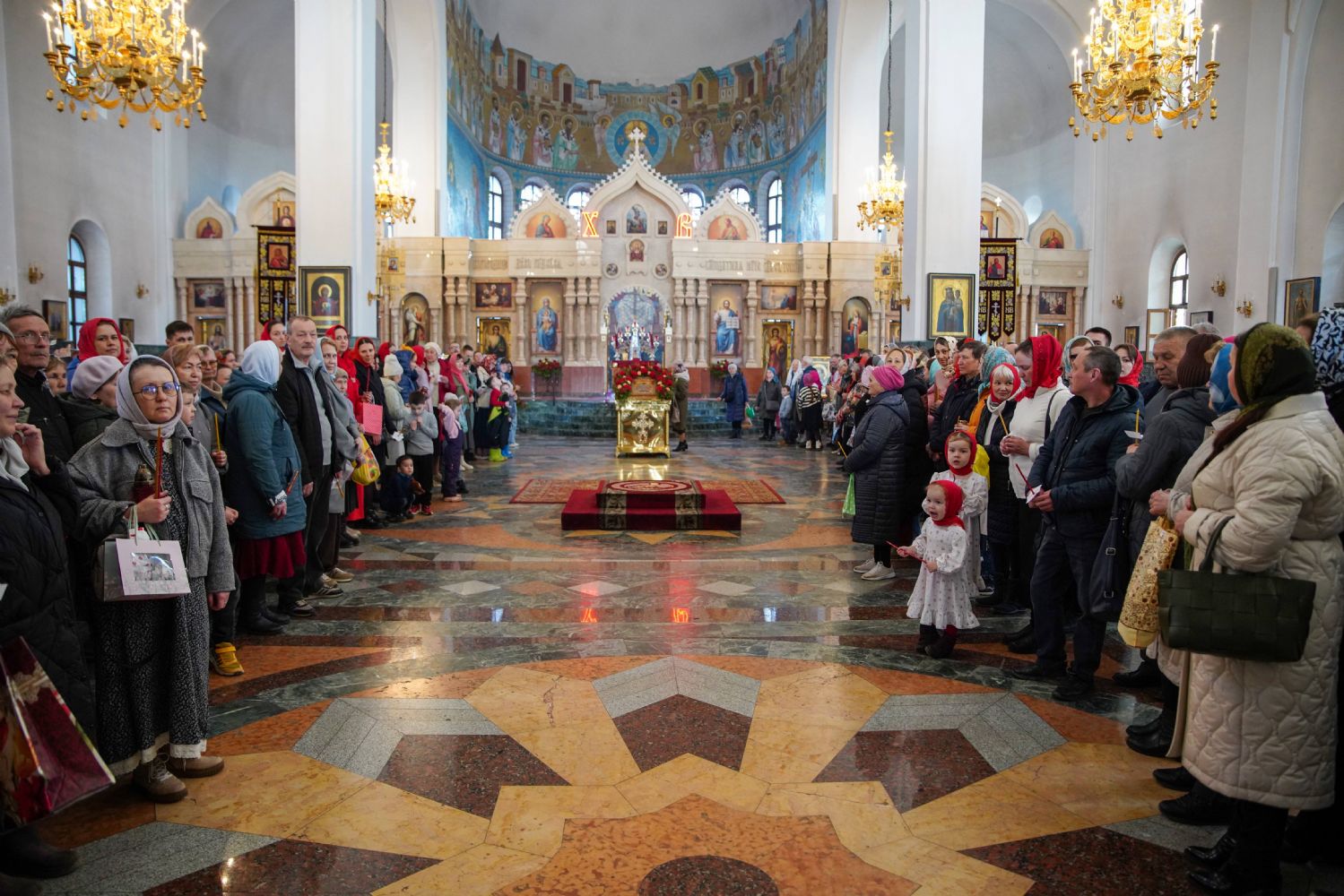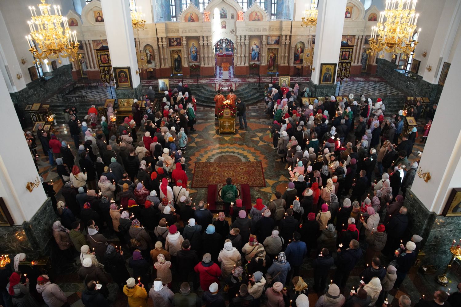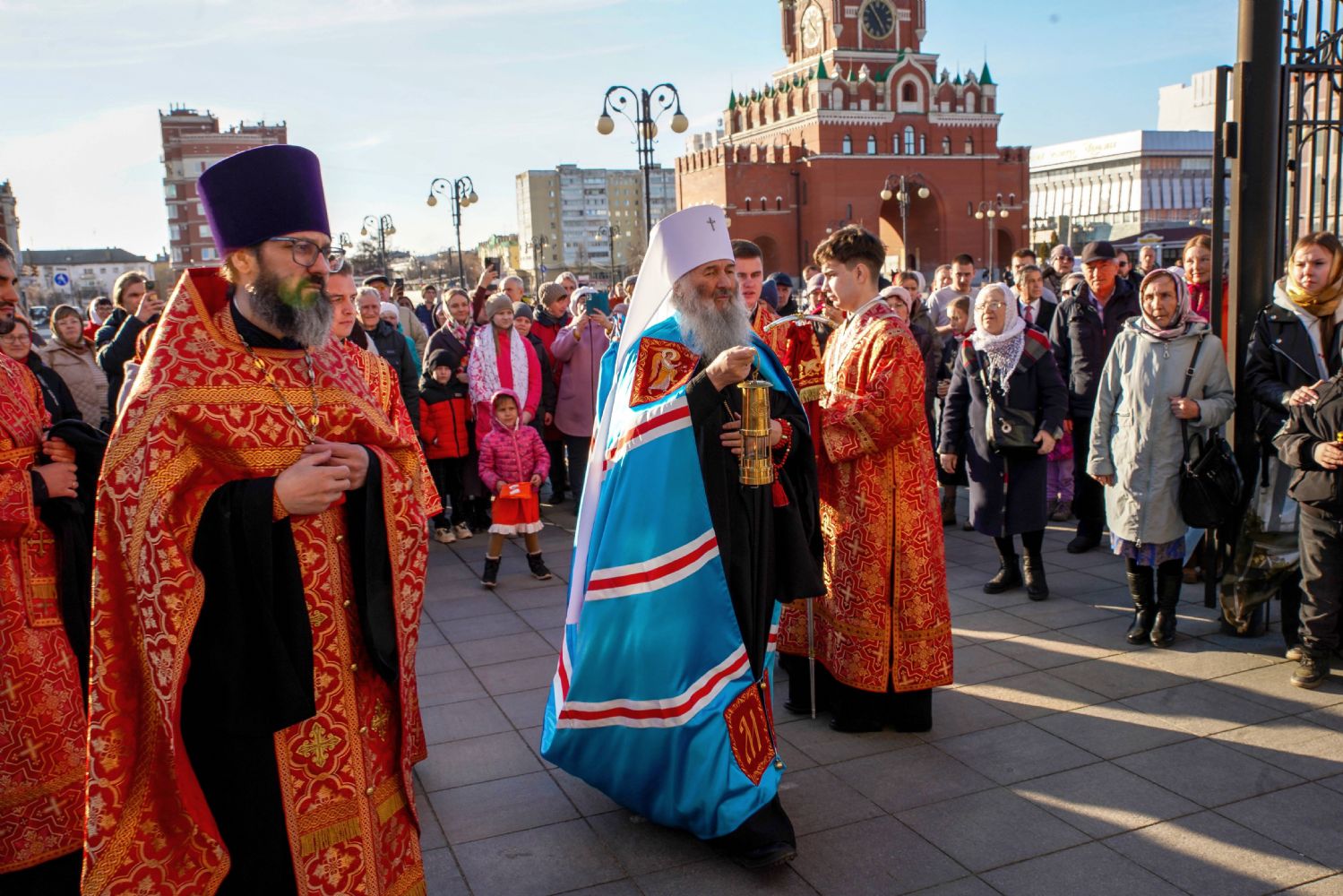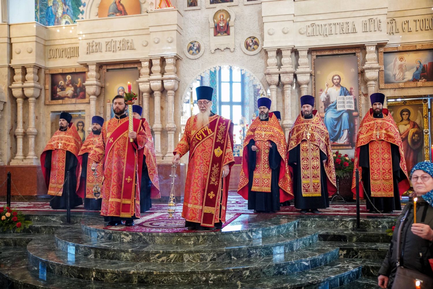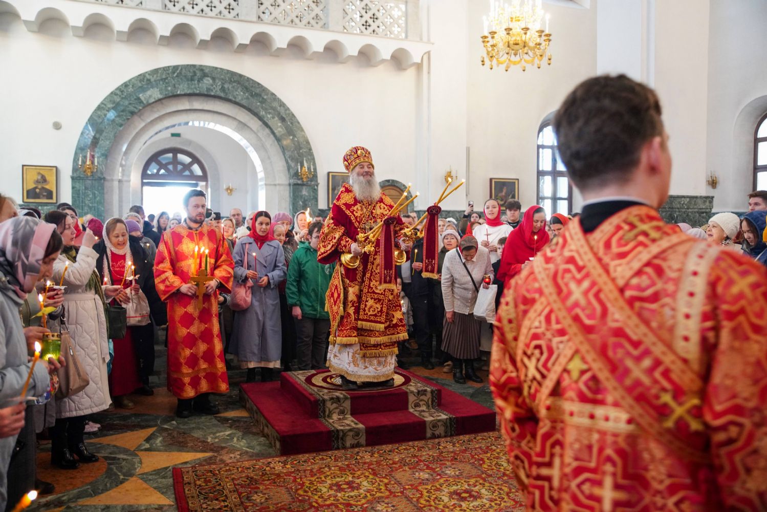 Архипастырю сослужили ключарь кафедрального собора протоиерей Сергий Поглазов, клирики собора, а также настоятель Покровского храма села Марисола протоиерей Сергий Сильдушкин и протодиакон Михаил Козловский. Песнопения исполнял детско-юношеский хор «Благовест» под управлением Татьяны Черновой.