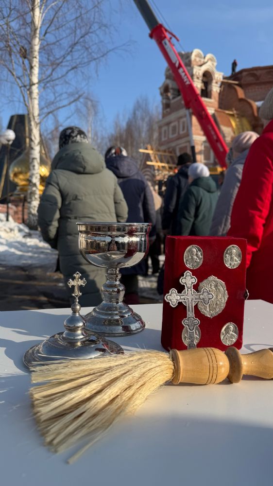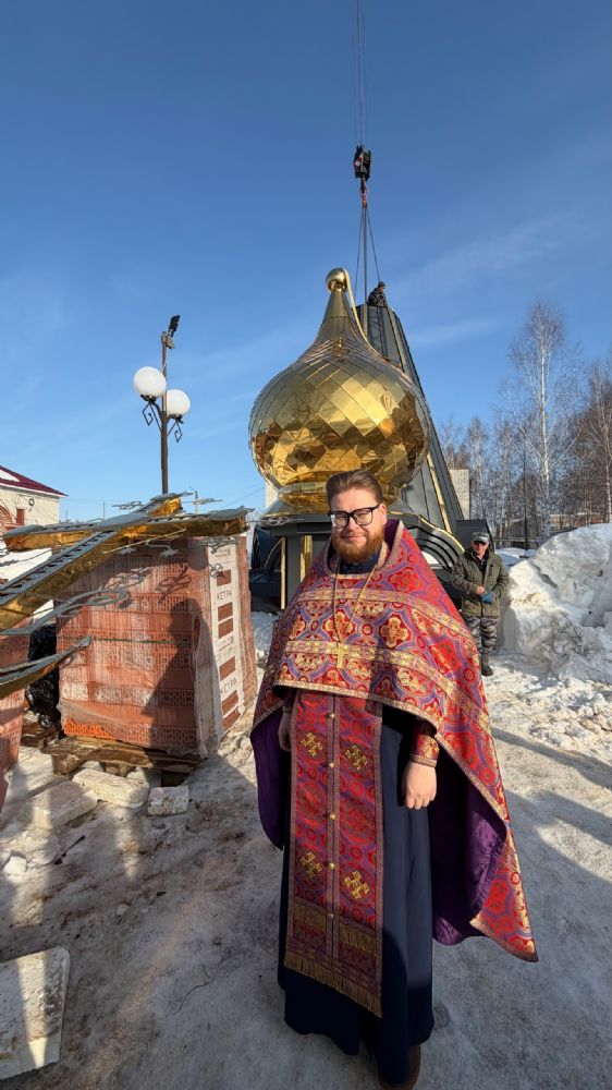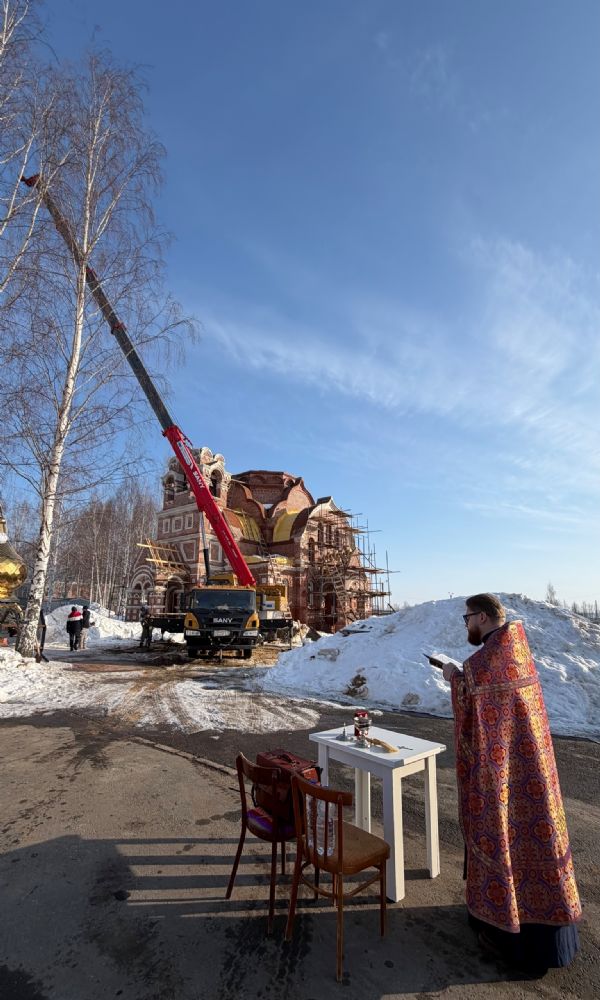 Чин освящения совершил настоятель храма иерей Артемий Промович. Батюшка совершил водосвятный молебен и окропил святой водой купол и крест, а также собравшихся прихожан.