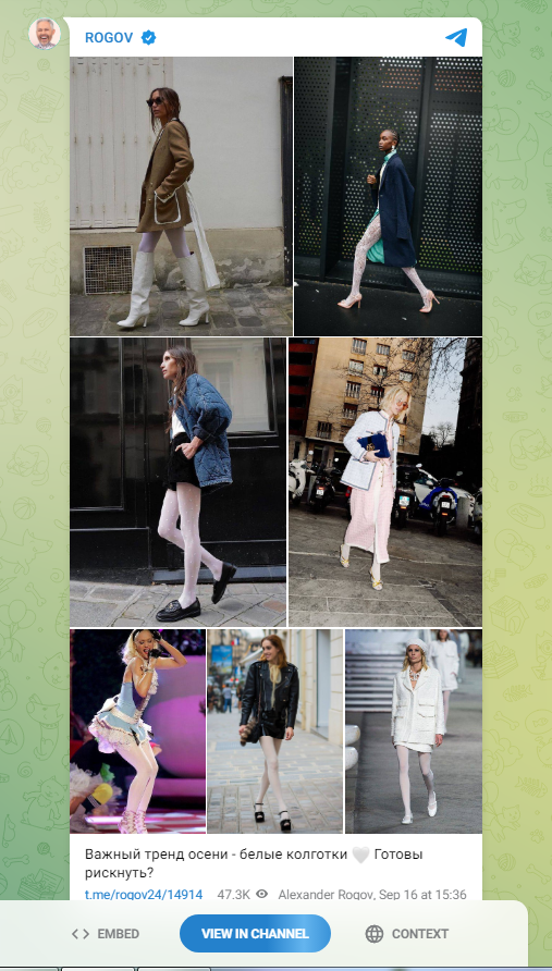 Александр Рогов назвал белые колготки актуальным трендом наступившей осени