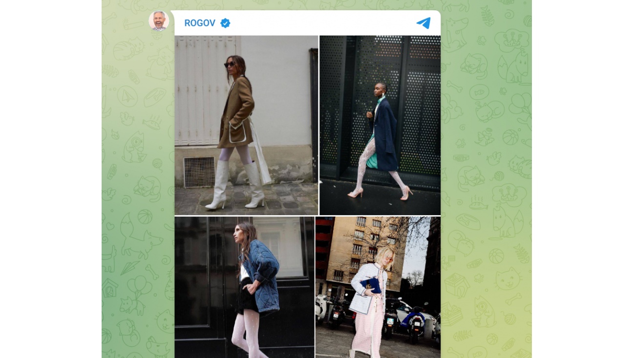 В качестве примеров Рогов прикрепил фотографии удачных образов с белыми колготками, как с плотными, так и с кружевными.