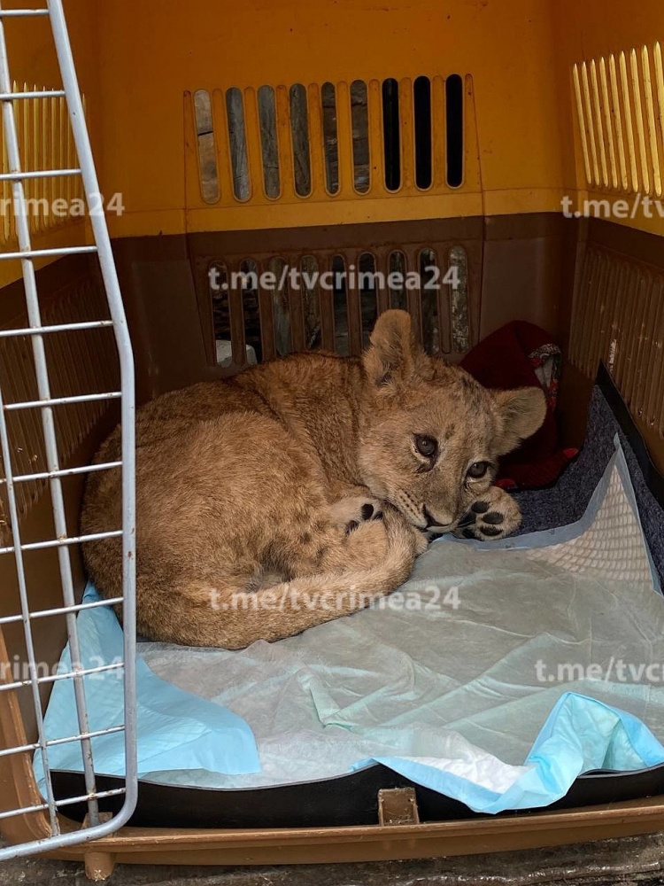 Истощённого львёнка привезли из Мелитополя в один из крымских зоопарков, сообщает «Крым 24».