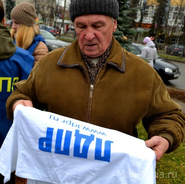 Пока у памятника комсомольцам огненных лет звучали пламенные речи, активисты раздавали агитационные материалы — газеты, брошюры, календари, бейсболки, футболки, диски. За происходящим наблюдали сотрудники полиции и члены общественного совета при МВД по Республике Марий Эл.