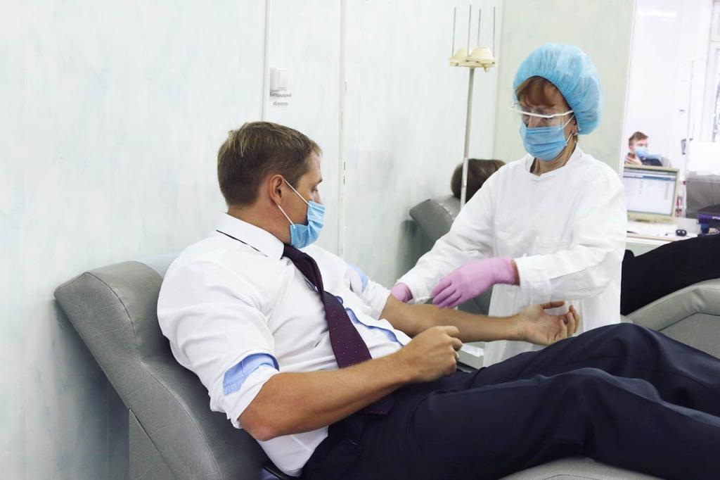 В этом году в связи с условиями пандемии для студентов был проведен информационный этап, а участие в итоговом этапе (сдача крови) приняли 60 человек, в том числе ректор университета Михаил Швецов: