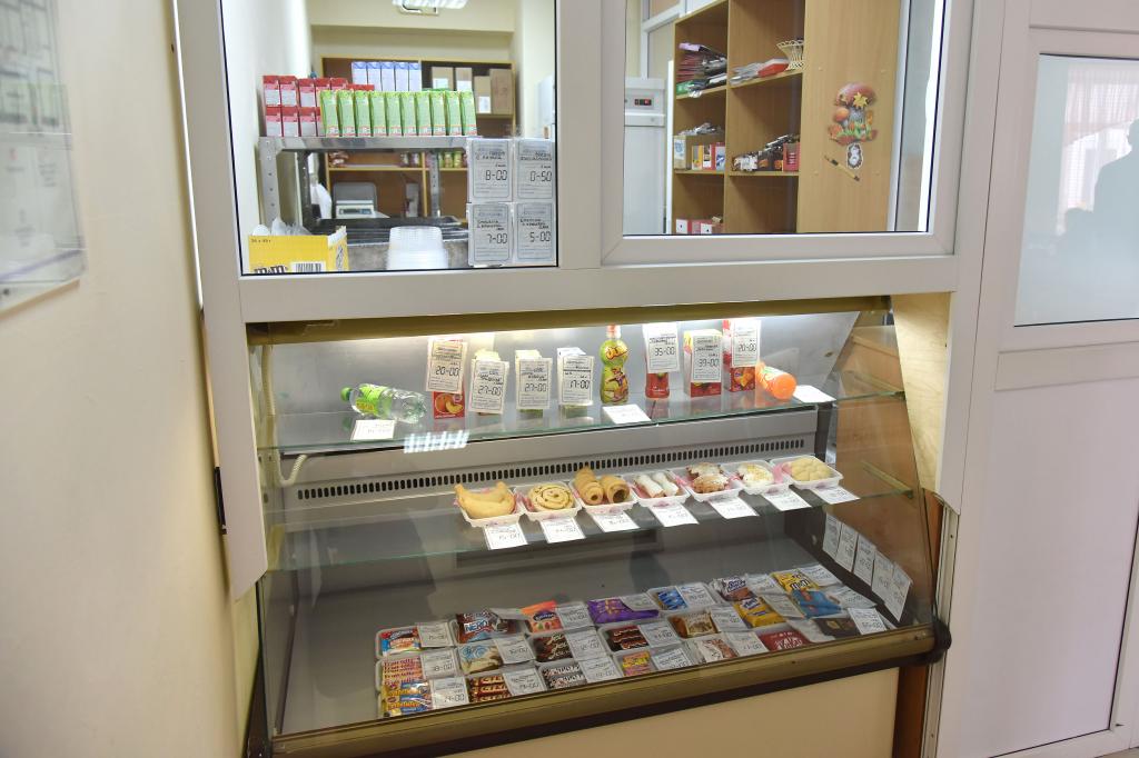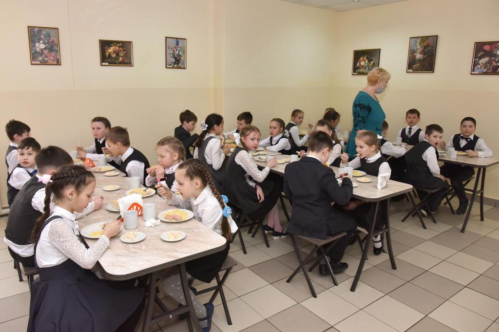 Заведующий столовой Игорь Домрачев рассказал, что организацией горячих обедов в школе занимается комбинат питания «Школьник», который полностью закупает продукты и привозит их ежедневно. Несколько лет назад по программе модернизации образовательных учреждений в столовой был сделан ремонт, школа получила новое технологическое оборудование. Ежедневно в этой школьной столовой питается 1400 детей — учащиеся с 1 по 11 класс.