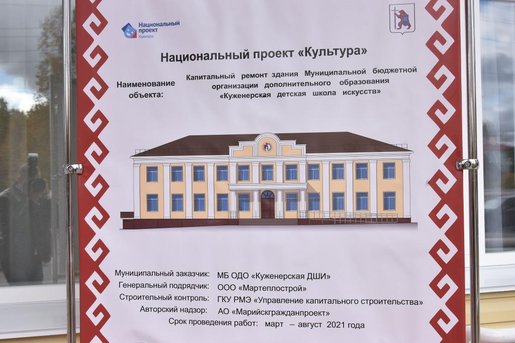 В ходе рабочей поездки глава региона побывал также в Куженерской школе искуссств, в которой тоже был проведён капитальный ремонт. Он осмотрел фасад здания, концертный зал, класс хореографии, кабинеты изобразительного искусства и актёрского мастерства.