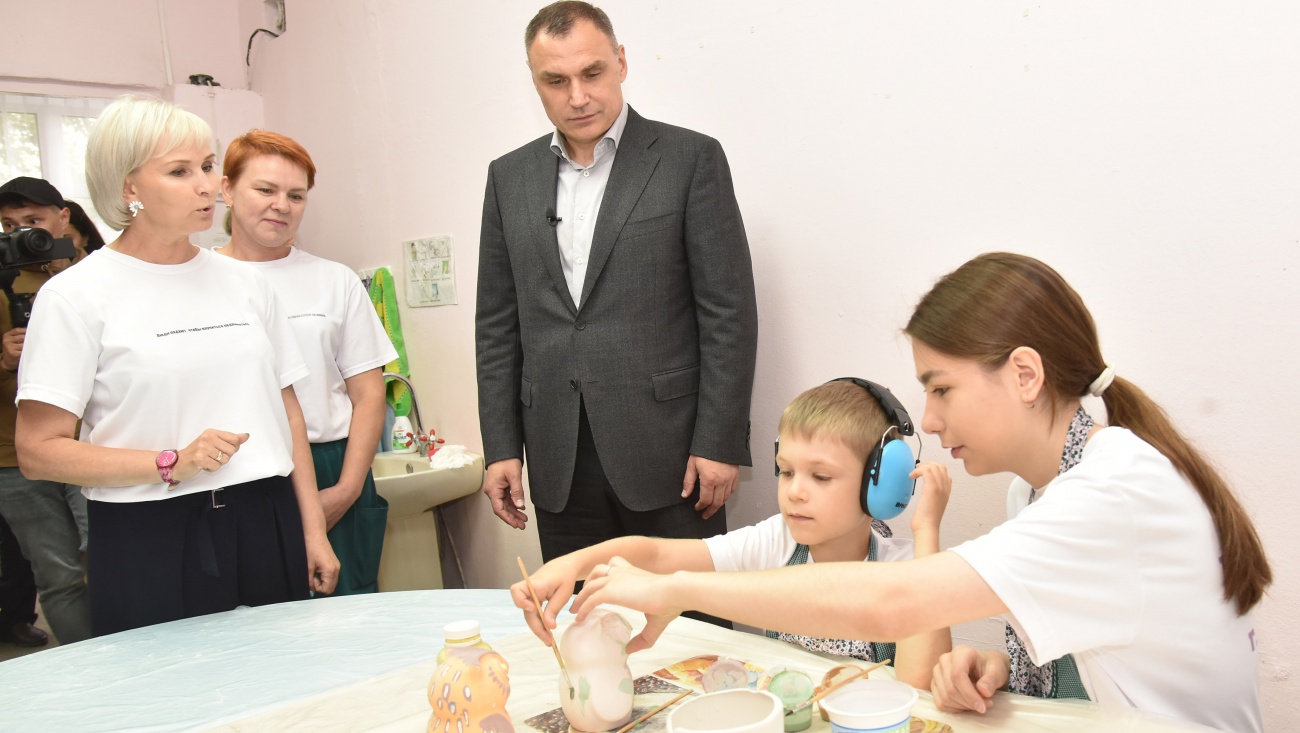 Врио Главы Марий Эл осмотрел помещения мастерских, пообщался с директором школы Мариной Янковской, руководителем организации Александрой Алексеевой, и ребятами.