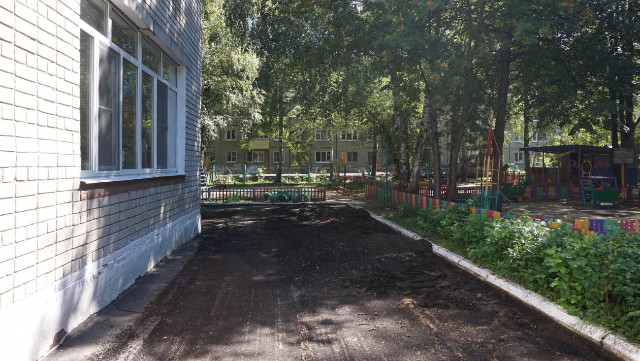 Так, в детском саду № 70 сейчас ведутся подготовительные работы перед укладкой нового асфальтового покрытия. Дорожки здесь были разрушены, образовались многочисленные трещины и ямы.