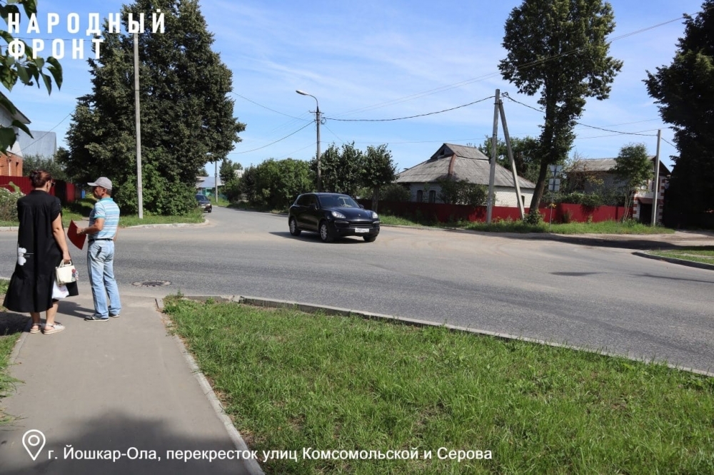 Не лучше ситуация и в посёлке Знаменский. На перекрёсток улиц Первомайской и Победы возле школы властям Медведевского района пожаловались ещё в 2020 году. "Марийскавтодор" после этого установил здесь искусственную неровность и знаки.