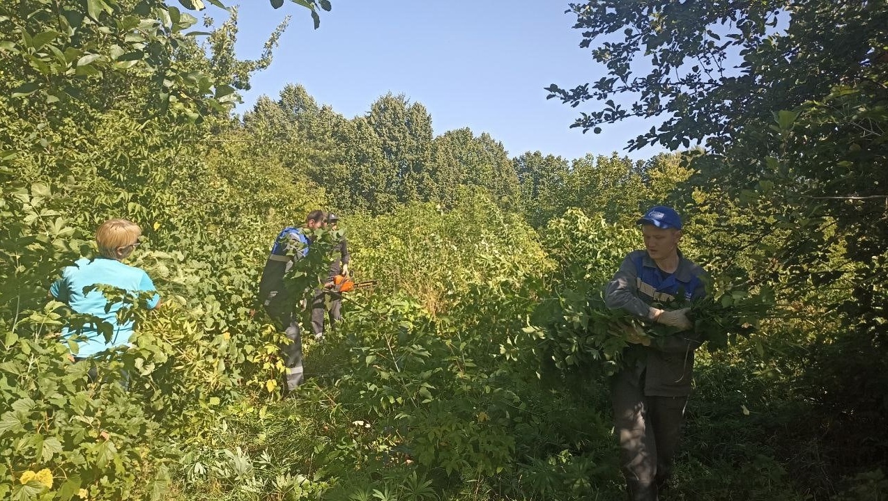 Для обрезки кустов и деревьев прибыла бригада рабочих КС-22 под руководством эколога Д.В. Нестеренко.