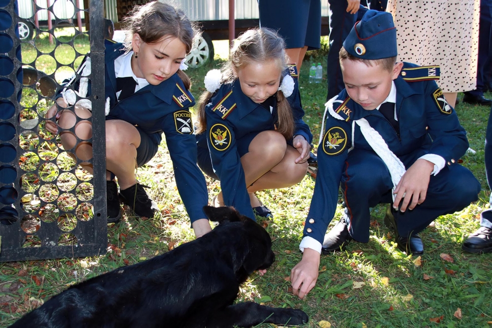 После торжественной линейки шефы из системы исполнения наказаний провели для кадетов выездной урок по служебному собаководству.