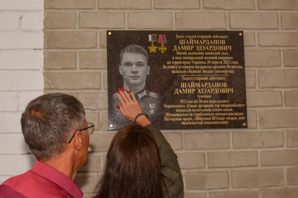 Старший лейтенант Дамир Шаймарданов 30 апреля этого года в бою за освобождение села Долгонькое возглавил колонну российских военнослужащих, и, находясь на острие атаки, защищая своих боевых товарищей, героически погиб. Министерством обороны России Дамиру Шаймарданову присвоено высшее звание - Герой Российской Федерации, с вручением знака особого отличия - медаль «Золотая Звезда».
