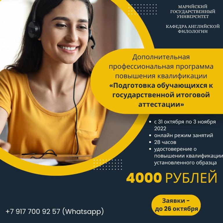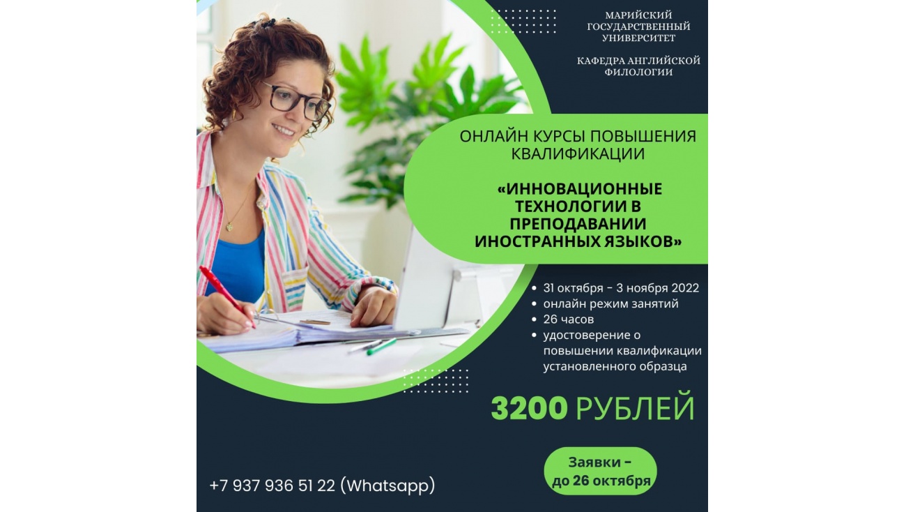 Факультет иностранных языков Марийского государственного университета приглашает педагогов пройти повышение квалификации по программам: