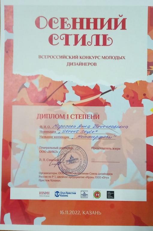 Студенты Йошкар-Олинского технологического колледжа взяли первое место на Всероссийском конкурсе молодых дизайнеров «Осенний стиль» в Казани.