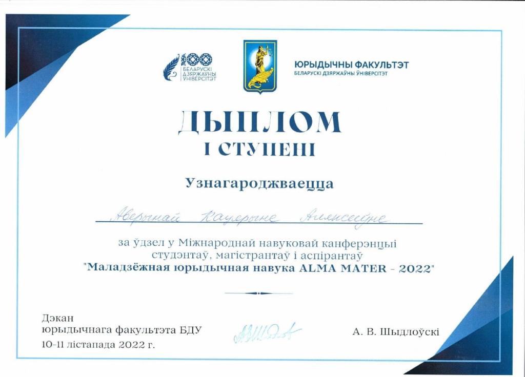 C 10-11 ноября в Белорусском государственном университете проходила Международная научная конференция «Молодёжная юридическая наука Alma Mater - 2022».