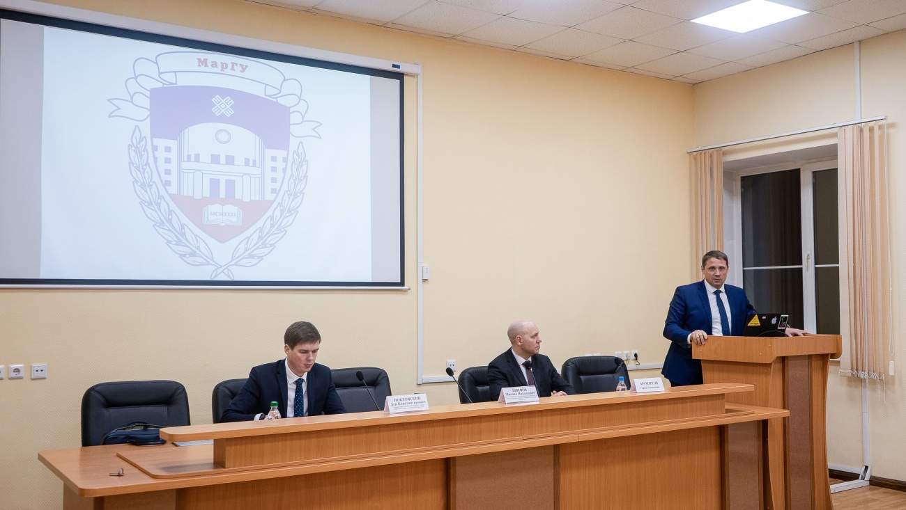 В Марийском государственном университете состоялась встреча с участием ректора, депутата Государственного Собрания Республики Марий Эл по Центральному избирательному округу № 2 Михаила Швецова, первого заместителя главы администрации городского округа «Город Йошкар-Ола» Льва Покровского и заместителя главы администрации городского округа «Город Йошкар-Ола» Сергея Мухортов с выпускниками дополнительной образовательной программы «Народный управдом» и жителями Йошкар-Олы.