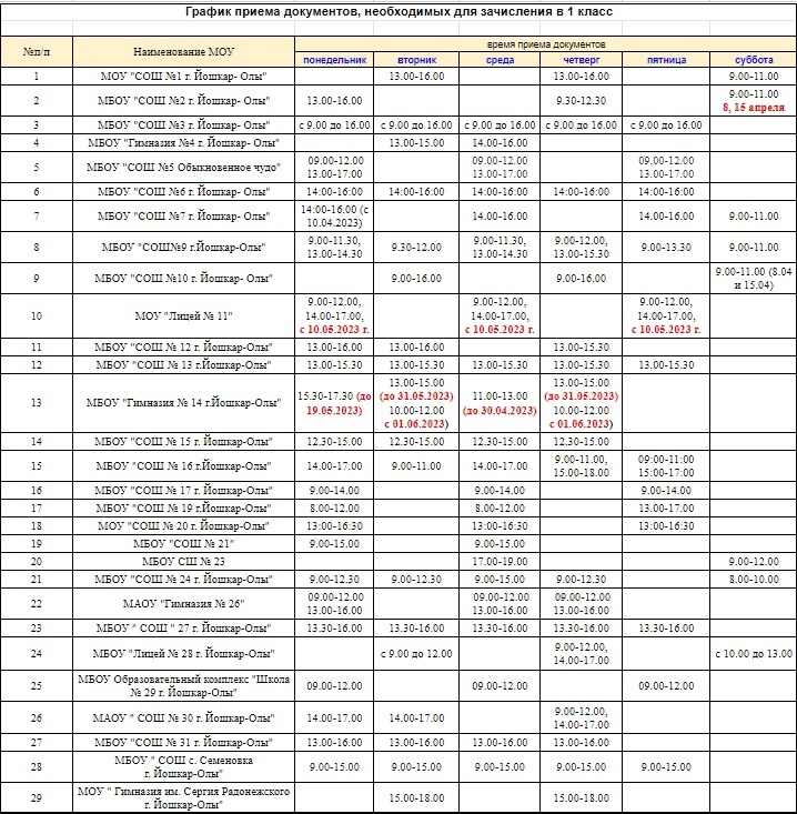 В Управлении образования Йошкар-Олы сообщили график приёма документов в первый класс в школах города.