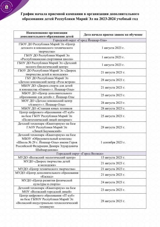 Основной период приёма заявок на обучение на 2023-2024 учебный год в образовательные организации дополнительного образования детей начнётся в августе 2023 года, сообщили в Минобрнауки.