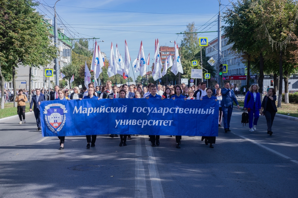 Студенты первого курса приняли участие в традиционном шествии «Парад студенчества», которое стартовало у корпуса Педагогического института, первого высшего учебного заведения Республики Марий Эл. В этот праздничный день студенты и сотрудники вуза не забыли вновь почтить память героев, сражавшихся ради будущего страны и народа в Великой Отечественной войны. После возложения цветов у мемориального ансамбля «Воинская Слава» программа Дня знаний продолжилась на площади Оболенского-Ноготкова, где прошла торжественная линейка с участием почётных гостей: сенатора Российской Федерации Константина Косачёва, Первого заместителя Председателя Правительства Республики Марий Эл Евгения Кузьмина, Председателя Государственного Собрания Республики Марий Эл Анатолия Смирнова и других. При участии ректора МарГУ Михаила Швецова состоялось награждение первокурсников-высокобалльников.