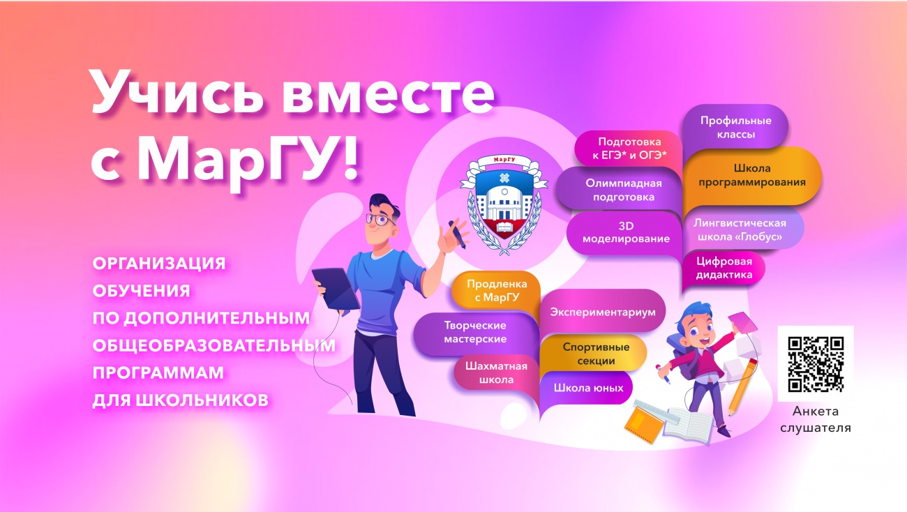 Центр довузовской подготовки Марийского государственного университета приглашает учащихся 9, 10 и 11 классов на подготовку к ОГЭ, ЕГЭ, в профильные классы, а также на различные программы дополнительного образования. Обучение проходит в вечернее время по рабочим дням и в субботу.
