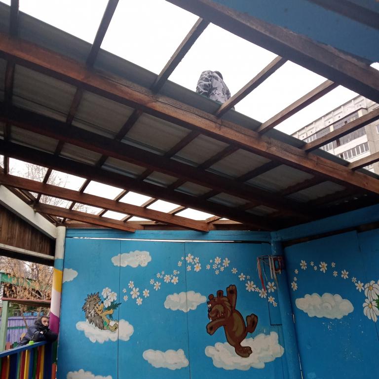 В детском саду № 11 «Гнёздышко» в Йошкар-Оле приятные обновления. На трёх прогулочных верандах починили кровлю.