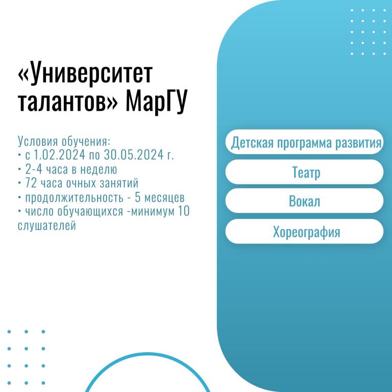 - Университет талантов: детская программа развития, театр, вокал, хореография