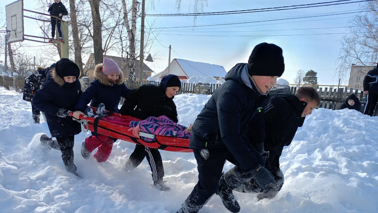 Далее последовала практическая часть. Ребята соревновались в беге на лыжах, учились кидать спасательный круг и конец Александрова условному утопающему, оказывали помощь с использованием носилок и подручных средств.