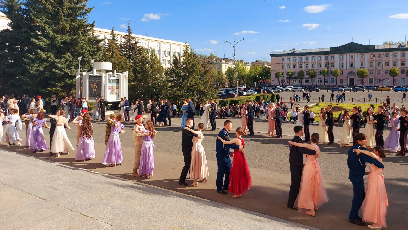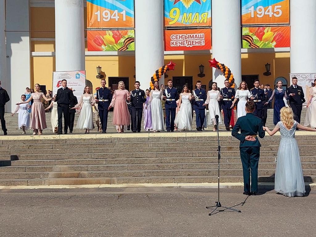 Перед Марийским театром драмы им. М. Шкетана в Йошкар-Оле накануне прошёл городской бал «Вальс Победы».