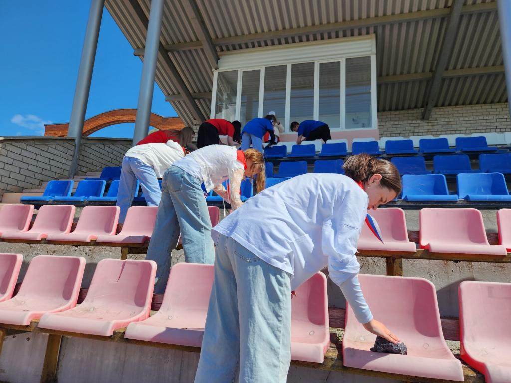 После награждения отличившихся ребята разделились на пять команд и отправились выполнять волонтёрскую работу. Одни активситы убирали мусор на территории мини-зоопарка. Другие помогали работникам краеведческого музея подготовиться к приёму воспитанников детского сада. Ещё три команды отмывали памятники на аллее Победы, подклеивали книги в библиотеке, прибирали стадион «Дружба».