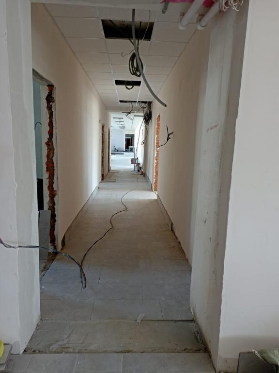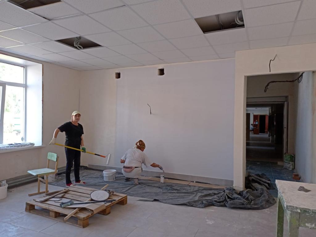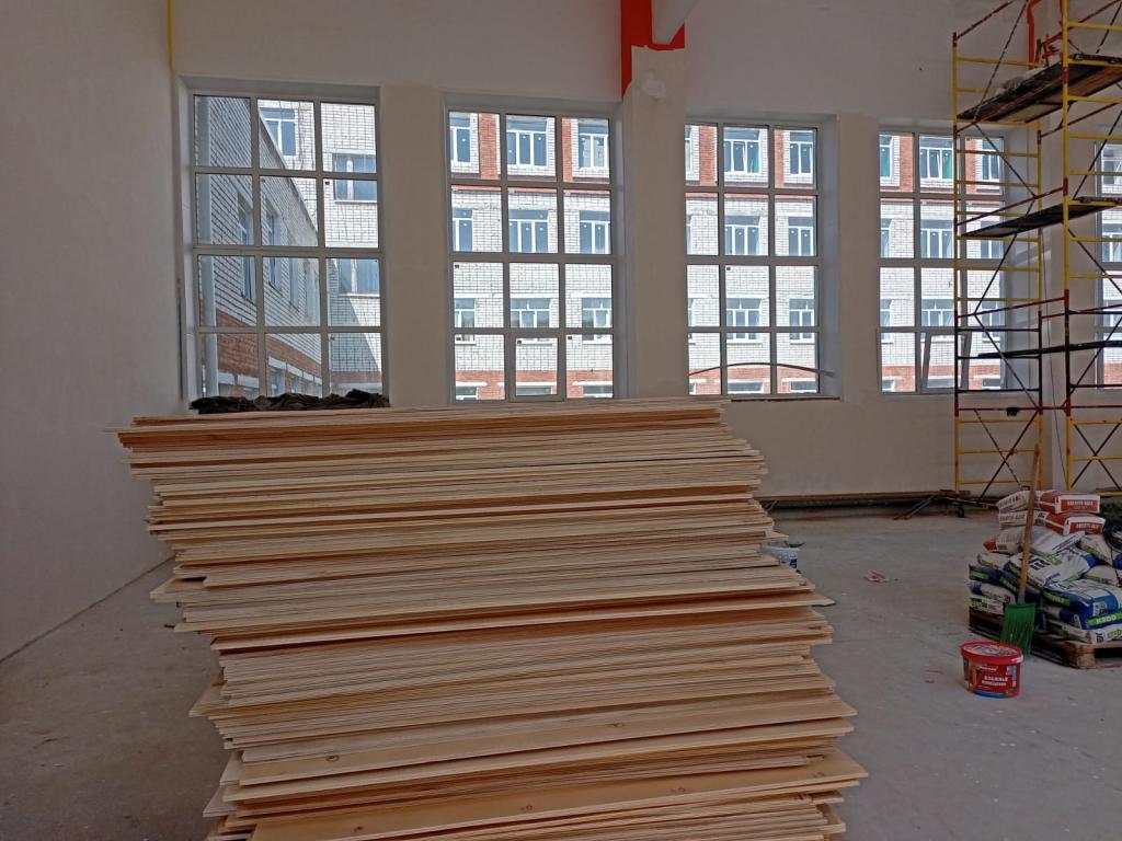 В настоящее время подрядчик занимается внутренними работами. В здании образовательного учреждения красят стены, обновляют спортивный зал. На первом этаже завершили установку системы отопления.
