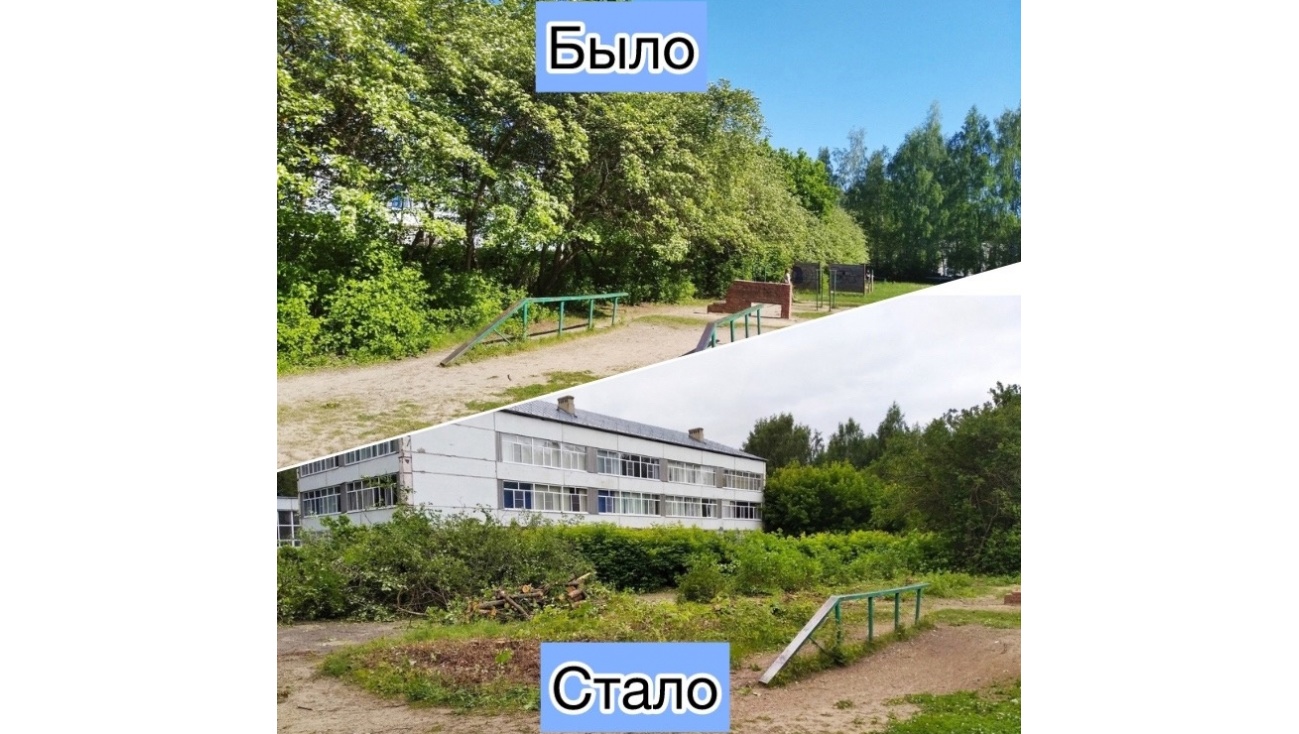 Работы по расчистке пришкольной территории проводятся третий год подряд. В 2022 году убрали аварийные и сухостойные деревья. В 2023 — сделали кронирование и оздоравливающую обрезку ветвей.