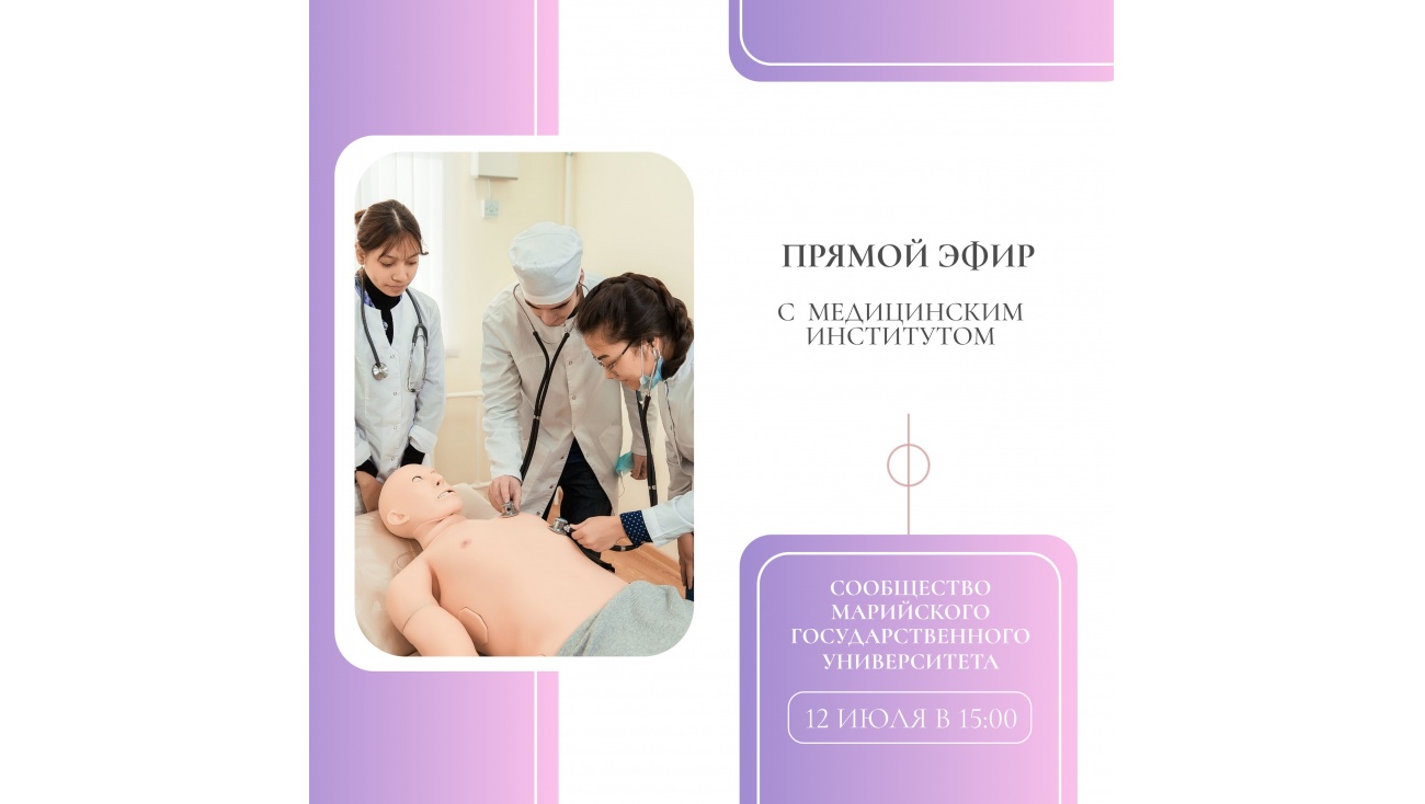 Прямой эфир об Медицинском институте пройдёт 12 июля в 15:00, в официальной группе МарГУ — https://vk.com/officialmarsu! Подключайтесь, задавайте вопросы и выбирайте место обучения своей мечты!