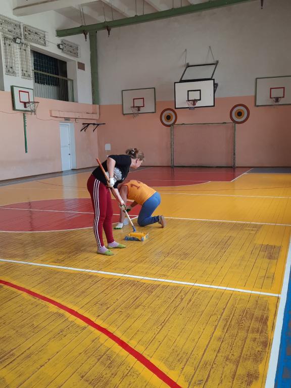 В образовательном учреждении приводят в порядок классные кабинеты, красят коридоры, лестничные марши, спортзал, частично заменена мебель.