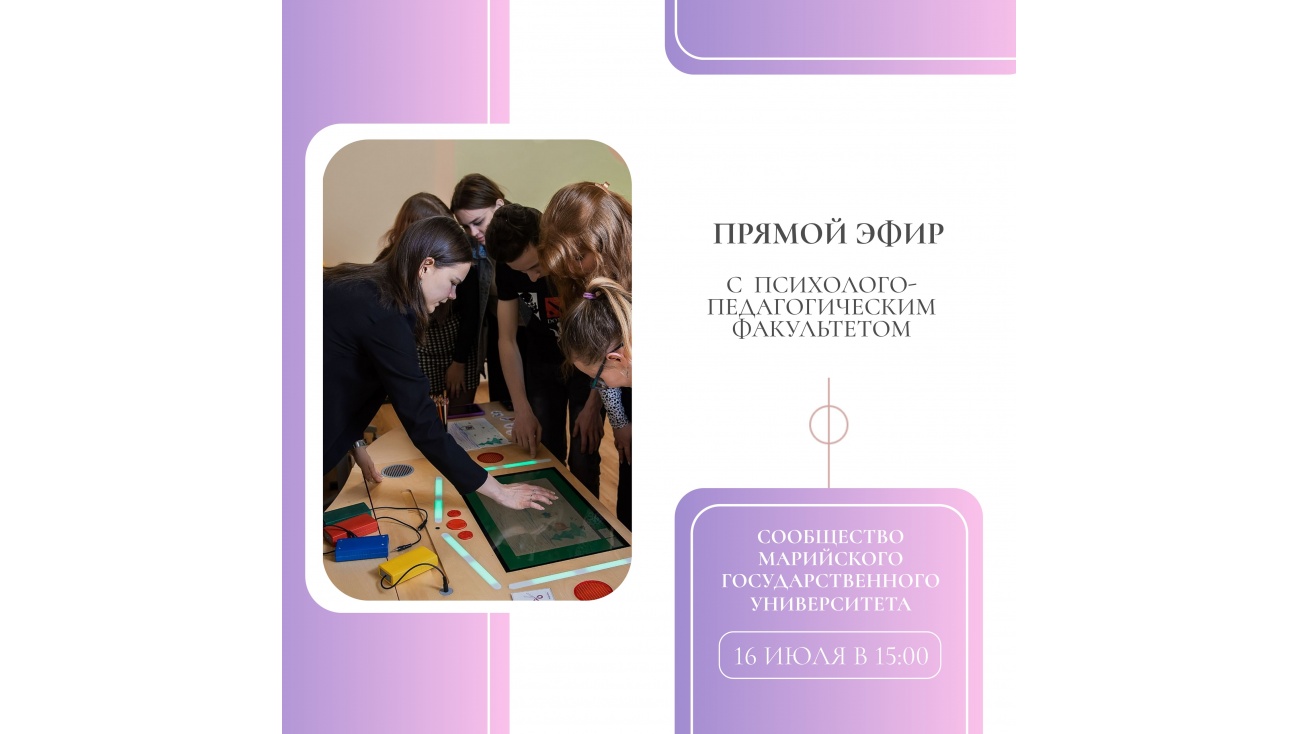 Прямой эфир о психолого-педагогическом факультете пройдёт 16 июля в 15:00, в официальной группе МарГУ — https://vk.com/officialmarsu! Подключайтесь, задавайте вопросы и выбирайте место обучения своей мечты!