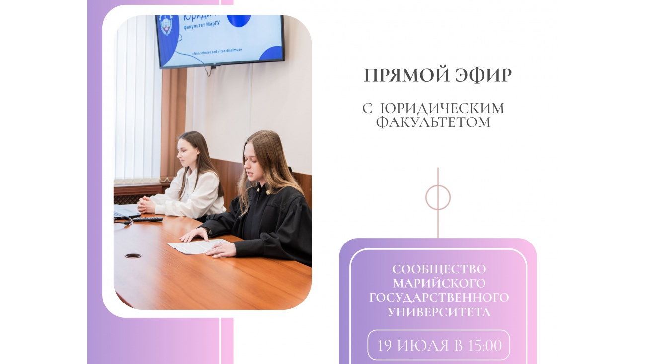 Прямой эфир о юридическом факультете пройдёт 19 июля в 15:00, в официальной группе МарГУ ! Подключайтесь, задавайте вопросы и выбирайте место обучения своей мечты!