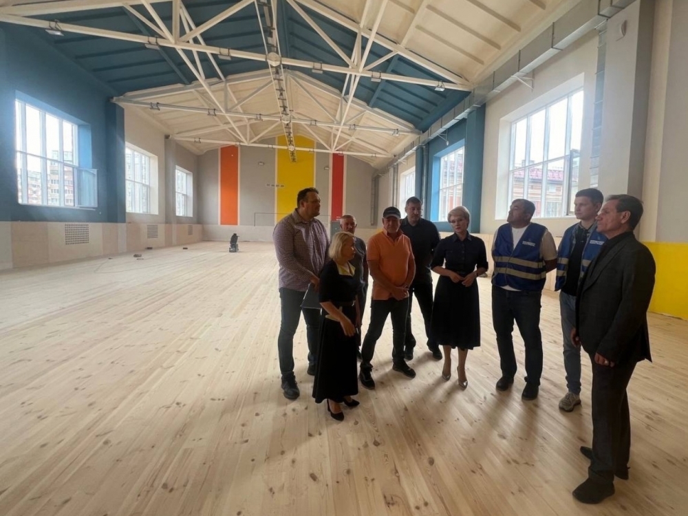 Максим Бронников, Андрей Сакович и Александр Царегородцев оценили ремонт актового зала, учебных кабинетов, столовой и спортивного зала.