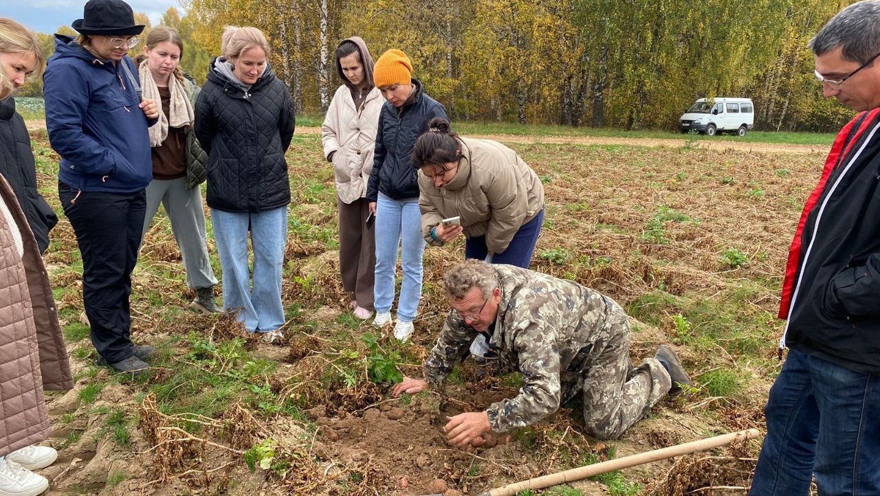 КФХ Бабушкина — крупнейшее КФХ не только о в Горномарийском районе, но и во всем регионе. Глава хозяйства Андрей Аверкиевич Бабушкин радушно встретил гостей и сам лично провел экскурсию по хозяйству, ознакомил слушателей Школы с условиями и режимом хранения овощей, показал свои овощехранилища. Участники проекта изучили работу сортировального пункта, познакомились с новейшей техникой, на поле посмотрели работу картофелеуборочных комбайнов, увидели мощные современные поливальные установки. Кроме того, Андрей Аверкиевич ознакомил участников проекта с технологией выращивания картофеля. В это день растениеводы также посетили ООО «Агрорегион», где Сергей Ильин подробно рассказал об испытании новых сортов картофеля и капусты.