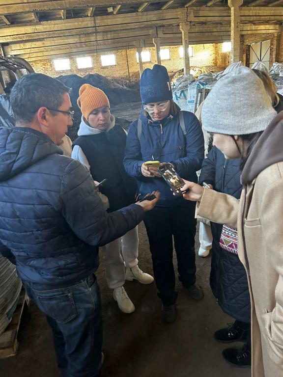 Следующим пунктом было посещение производства органических удобрений MariFerti в п. Краснооктябрьский. Здесь слушатели познакомились с процессом компостирования ППЖ (побочных продуктов животноводства — куриный помёт, свиной навоз, коровий навоз) и ОСВ (осадков сточных вод). Посмотрели технику (ворошитель компоста) фирмы Backhus A30, линию гранулирования органических удобрений, низкотемпературную (70°С) сушку гранул.