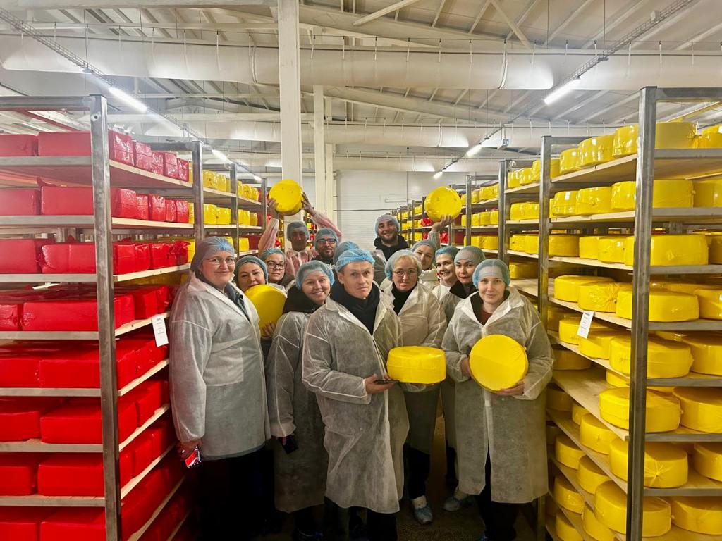 Так, в выходные слушатели проекта направились на производство ООО «Хузангаевское», которое принадлежит одному из лидеров сельского хозяйства в России- СПК «Звениговский». Предприятие находится в Алькеевском районе республики Татарстан. Долгая дорога оправдала все ожидания. Здесь начинающие фермеры посетили завод по производству сыра и сливочного масла. Главный технолог Алексей Красноперов провёл экскурсию по заводу, рассказав обо всех этапах и тонкостях изготовления различных видов сыров и самого вкусного и настоящего Хузангаевского масла. Для участников проекта провели дегустацию продукции. «На завод отправляется только свежее надоенное молоко с животноводческого комплекса, который находится рядом с маслосырзаводом», — приоткрыл нам секреты вкусных сыров и масла Алексей, которые, действительно, тают во рту.