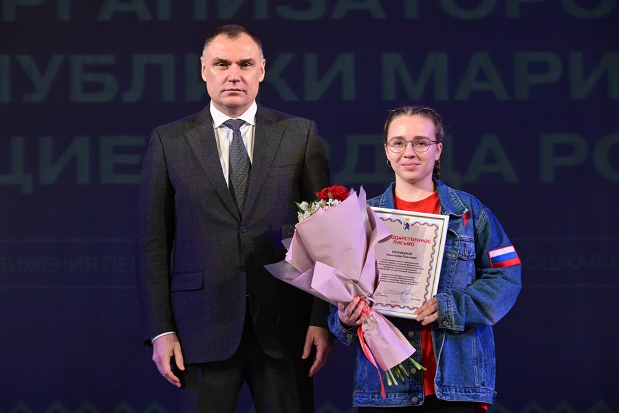 Благодарственными письмами главы Марий Эл награждены члены регионального Совета Первых: ученица Новоторъяльской средней школы Ангелина Иванова, студентка МарГУ Анастасия Соловьёва, студентка Йошкар-Олинского технологического колледжа Мария Демакова.