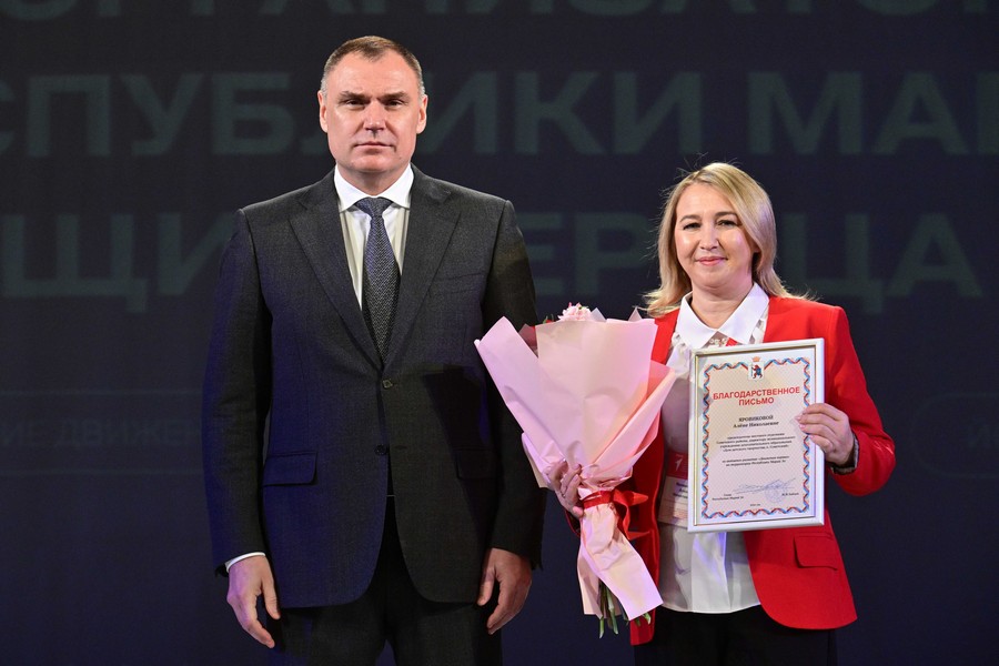 Благодарственные письма главы республики вручены: председателю местного отделения Медведевского района, методисту Медведевского районного дома детского творчества Татьяне Кудрявцевой, руководителю проектов регионального отделения «Движения Первых» Ольге Мишиной, председателю местного отделения Советского района, директору Дома детского творчества посёлка Советский Алёне Яровиковой.