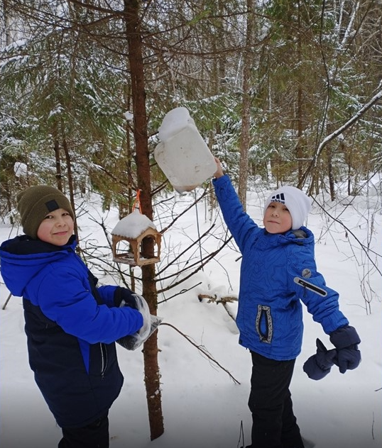 Третьеклассники Алексеевской школы следят за состоянием кормушек и регулярно наполняют их лакомствами для птиц.