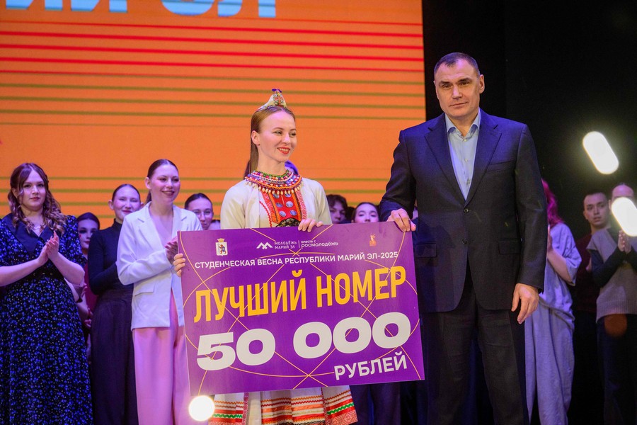 В Марий Эл прошёл гала-концерт «Студенческой весны». Глава региона поздравил участников и вручил сертификат на сумму 50 000 рублей за лучший номер республиканского фестиваля. Победителем оказался номер студентов Марийского государственного университета — «Древний трудовой танец народа мари».