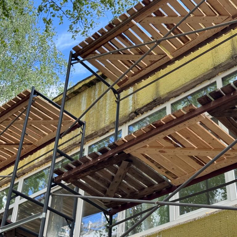 Подрядная организация полностью завершила демонтаж, установила новые окна, сделала отмостку, частично утеплила фасад.